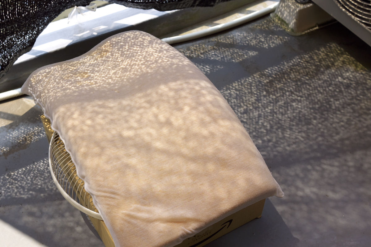 日向はダメらしいので、エアコンの室外機の前に置く。