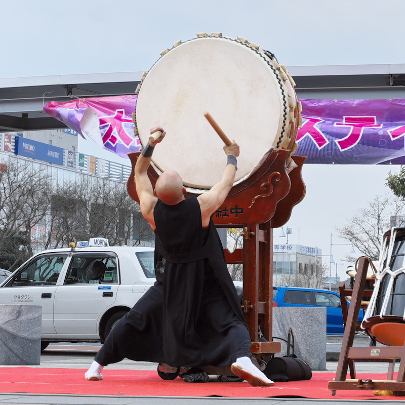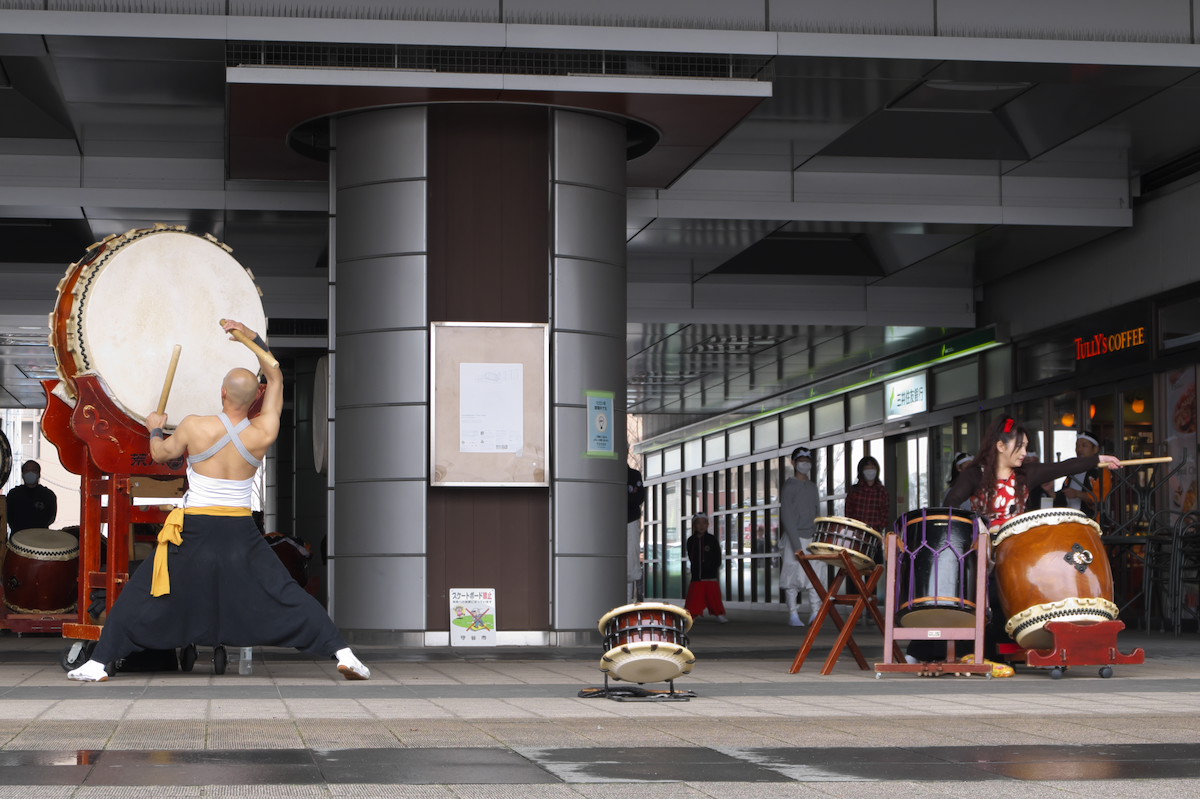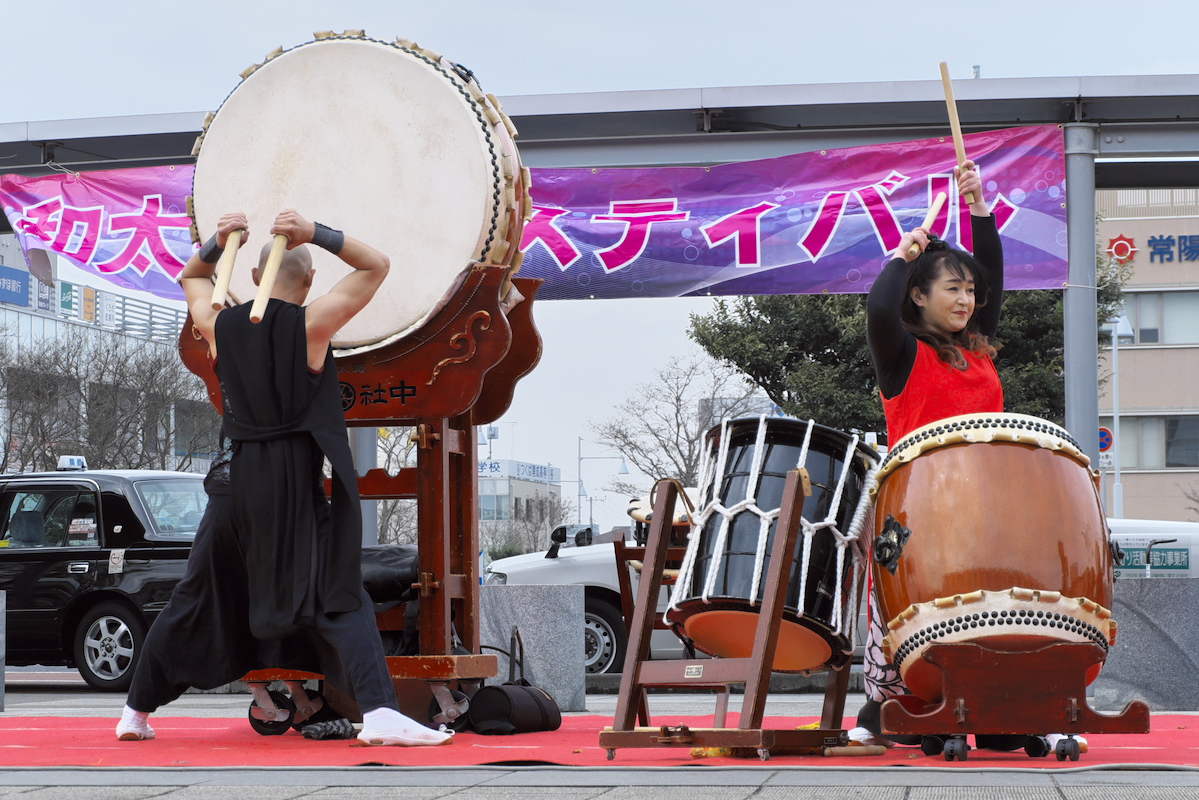 ヨメの付き添いで守谷駅にいたんだけど、たまたま和太鼓フェスタなるものが開催中。