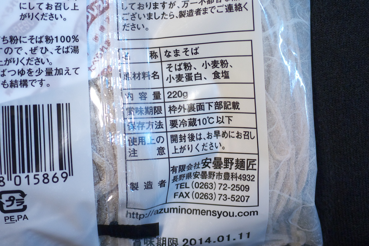 スーパーの蕎麦コーナーで全部チェックして選んだw。