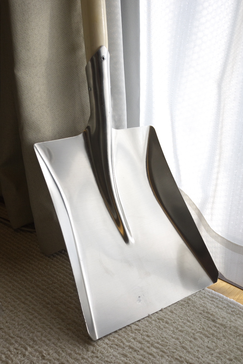 張りきって雪かき用スコップを入手したが、室内で日向ぼっこ中~。