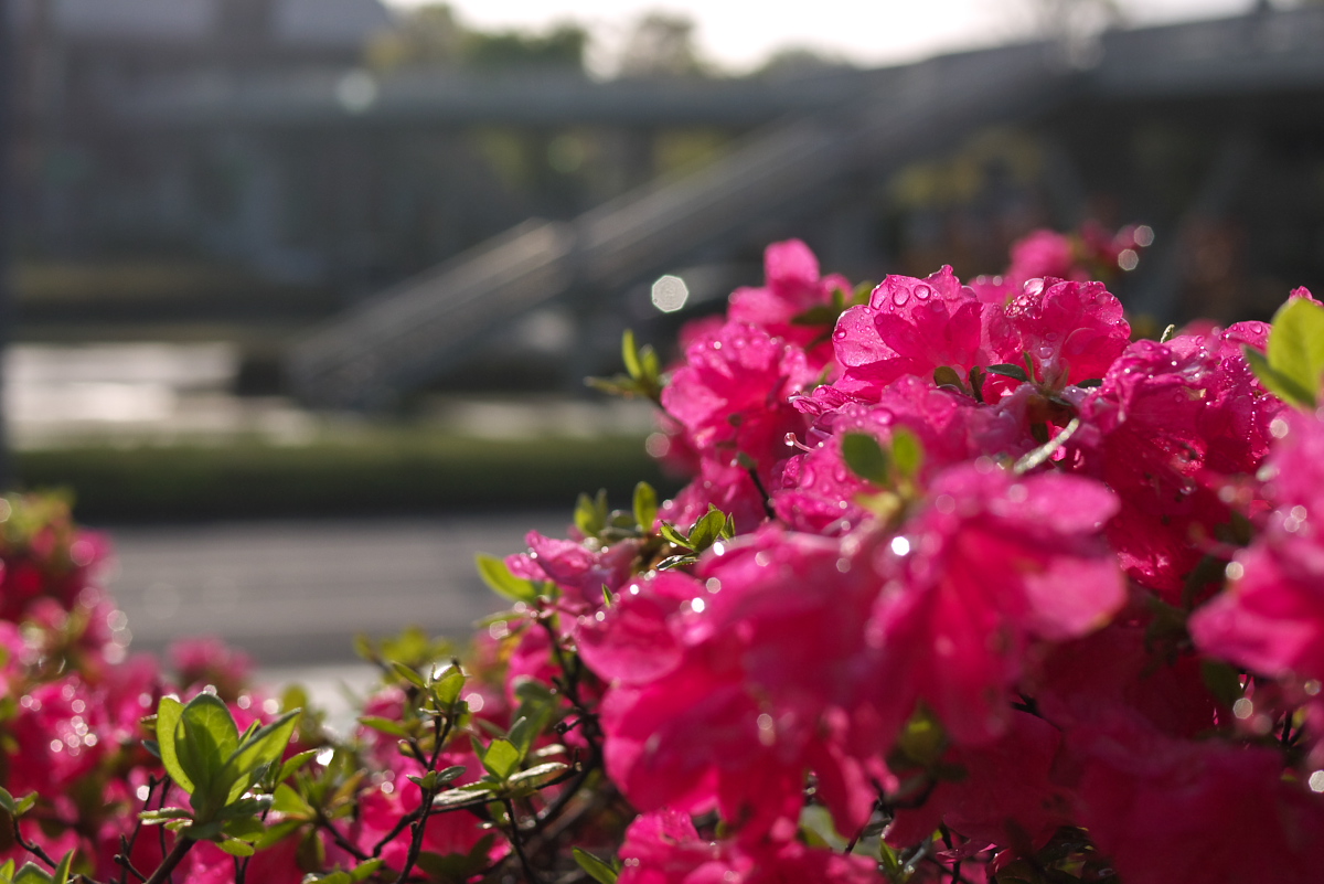 駅までの短い道中もつつじがキラキラしている。