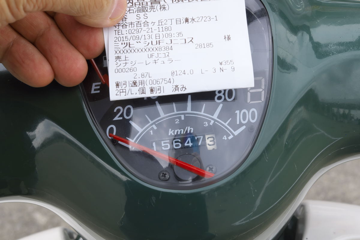 155.4km走行、2.87L給油で「54.15km/L」!