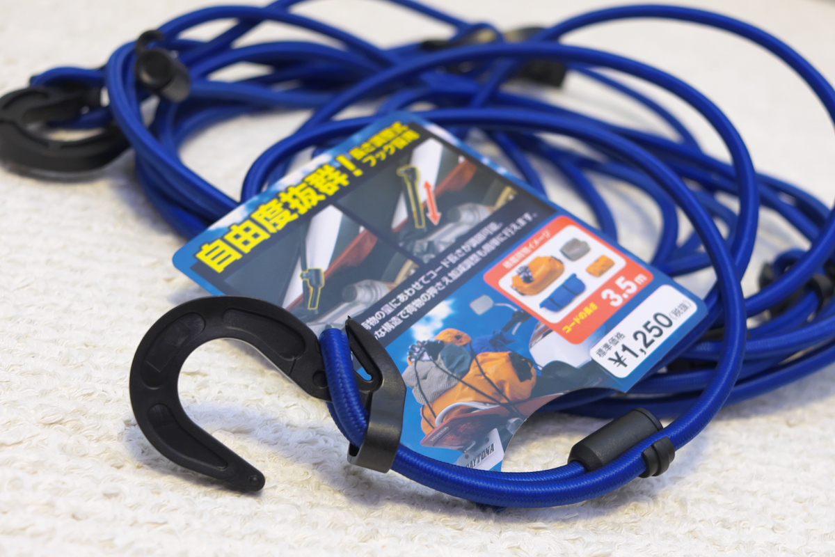長さを調整できるこのストレッチコード(DAYTONA)がお気に入りで、同じものを探したらamazonで激安だった。