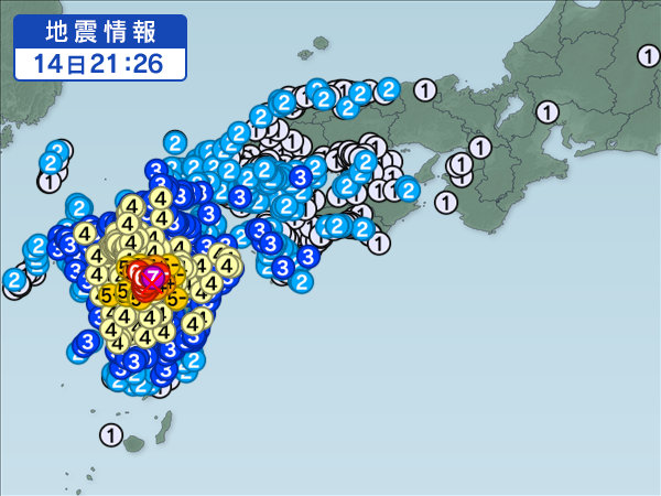 | 2016年4月14日 22時07分ごろ | 熊本県熊本地方 | 5.7 | 6弱 |